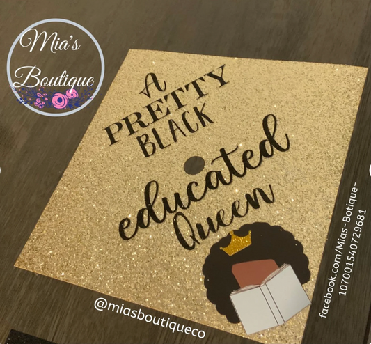Pretty, Educated, Queen Graduation Cap cover/ Decorated Grad Cap cover/Floral Cap Topper/ Custom Graduation Cap Design/ Grad Cap Decor