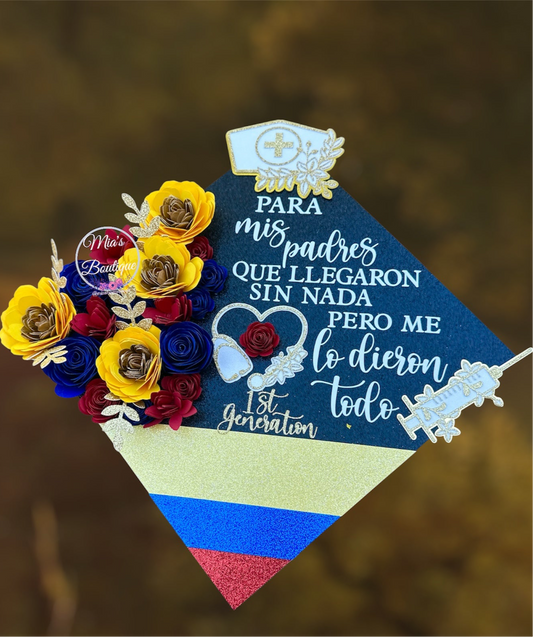 Custom Colombia and Mexican Graduation Cap Topper Floral Sunflower Colombia Flag Hispanic Para Mis Padres