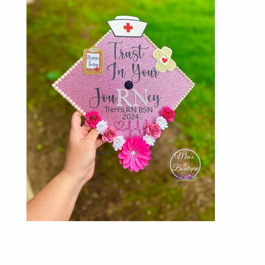Custom Nurse RN Graduation Cap Topper Trust in Your Journey Grad Cap Gift Decoration Decor Glitter Pink Gold Rose RN
