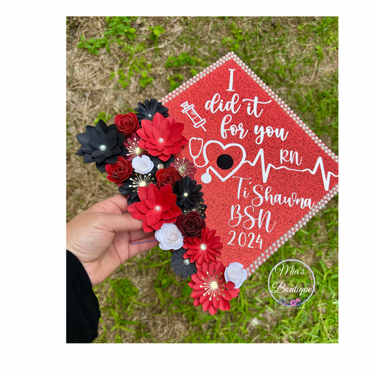 Custom Personalized Nurse Graduation Cap Topper Heart Stethoscope Floral Sunflowers
