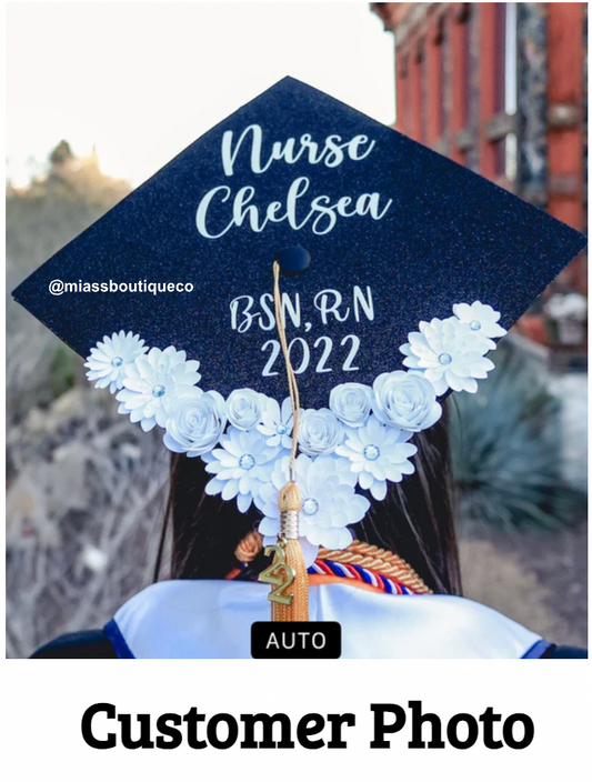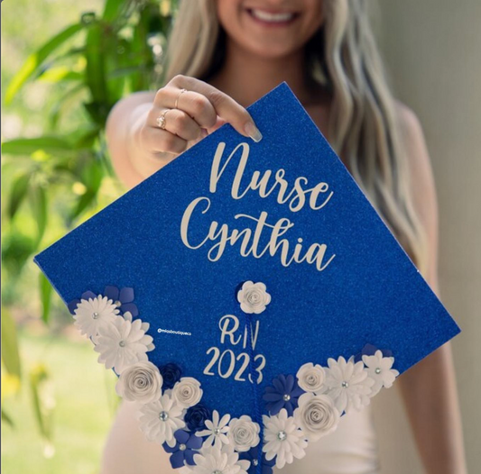 Custom Personalize Graduation Cap Topper Nurse Floral White and Black Sunflowers Nursing BSN RN
