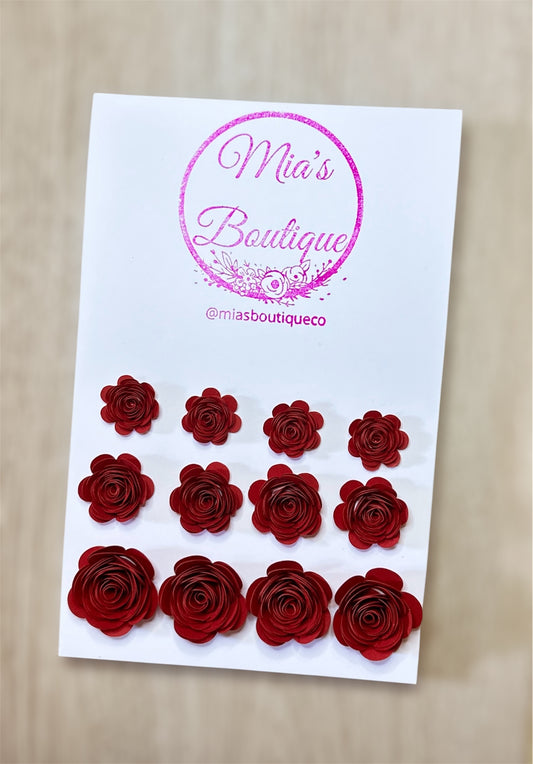 Red Roses Flowers set of 12 Small Medium Large Paper Flower Decoration, Grad Cap Paper Flower Embellishment, Graduation Cap Toppers